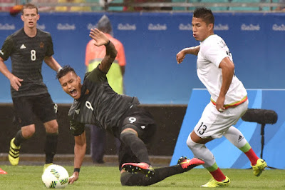 Em uma estreia bastante difícil nos Jogos Olímpicos do Rio de Janeiro, na Arena Fonte Nova, na Bahia, a seleção alemã enfrentou o México e buscou o empate por 2 a 2 depois de ficar duas vezes atrás do marcador. O duelo, disputado debaixo de chuva, foi válido pelo grupo C da competição.