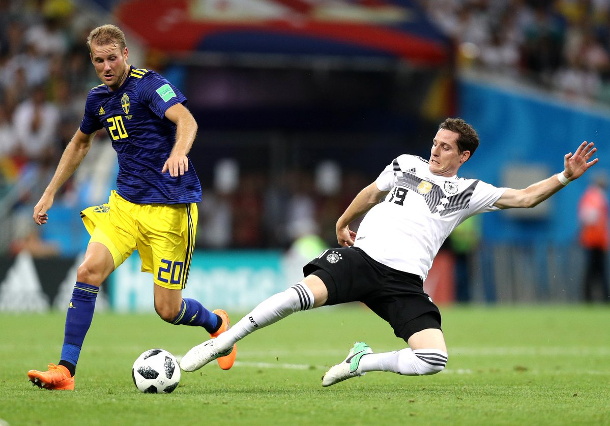 Aos 32 minutos, Kroos errou passe na intermediária, a Suécia puxou contra-ataque e abriu o placar. Claesson acertou um belo passe para Toivonen, que dominou bonito no peito, fugiu da marcação de Rüdiger e tocou por cima de Manuel Neuer.